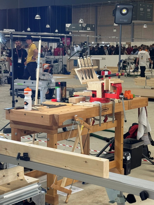 Sjöbergs ist stolz, Teil dieses wichtigen Ereignisses zu sein. Für die Euroskills 2025 haben wir über 40 Werkbänke (Sjöbergs Elite 2000 und Original 1900) bereitgestellt, die in den Disziplinen Schrankbau, Tischlerei und Zimmererhandwerk eingesetzt werden. Jeder Teilnehmer richtet seine eigene Werkbank individuell mit Werkzeugen und Zubehör ein – eine perfekte Basis für Kreativität und Präzision.