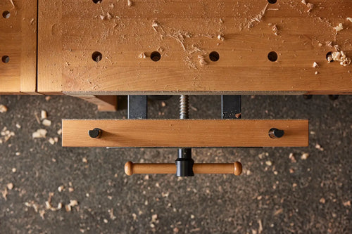 Werkstücke lassen sich sowohl von oben als auch seitlich an allen Außenkanten der clamping platform einspannen. Die Hobelbank-Kombination aus europäischer Buche (mit erstklassiger Ölbehandlung!) hat eine Länge von 2000 mm.