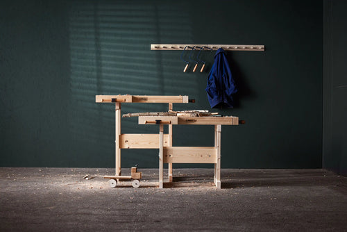 Junior/Senior ist ein kreativer Arbeitsplatz für Erwachsene und Kinder. Eine stabile Bank mit Beinen in zwei verschiedenen Höhen (640/860 mm). Die Bank besteht aus massiver Birke und ist mit doppelten Reihen von Kinnlöchern ausgestattet.